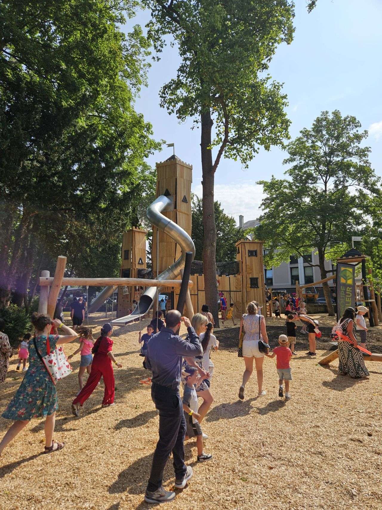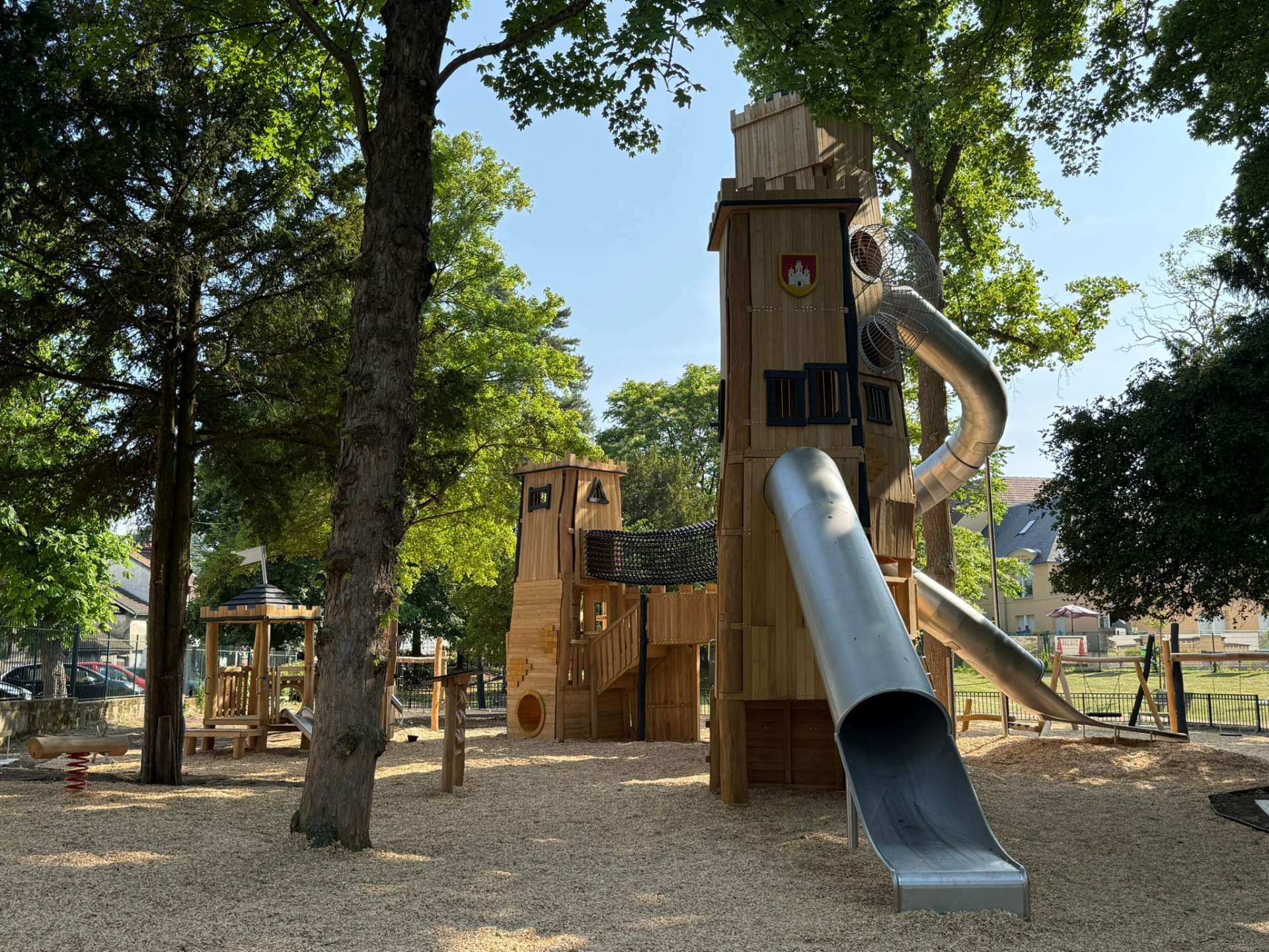 Nos aires de jeux château en bois peuvent être installées en milieu urbain, rural ou naturel, et personnalisées selon le style de votre espace.