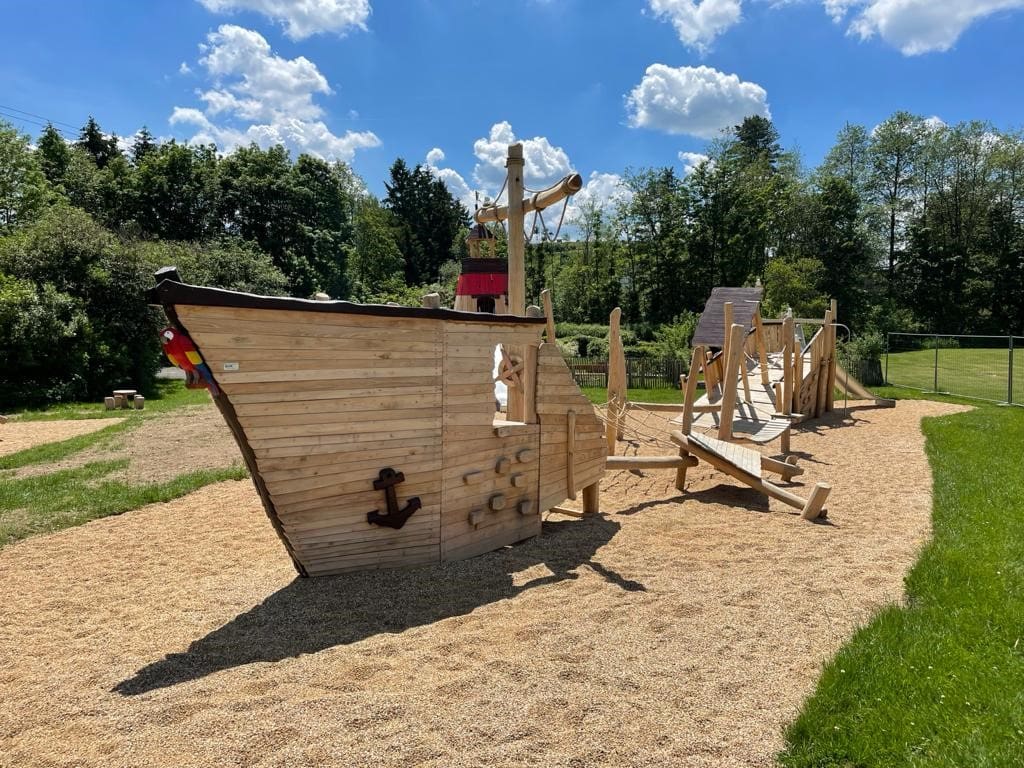 Structure de jeux bateau en robinier pour aire de jeux naturelle