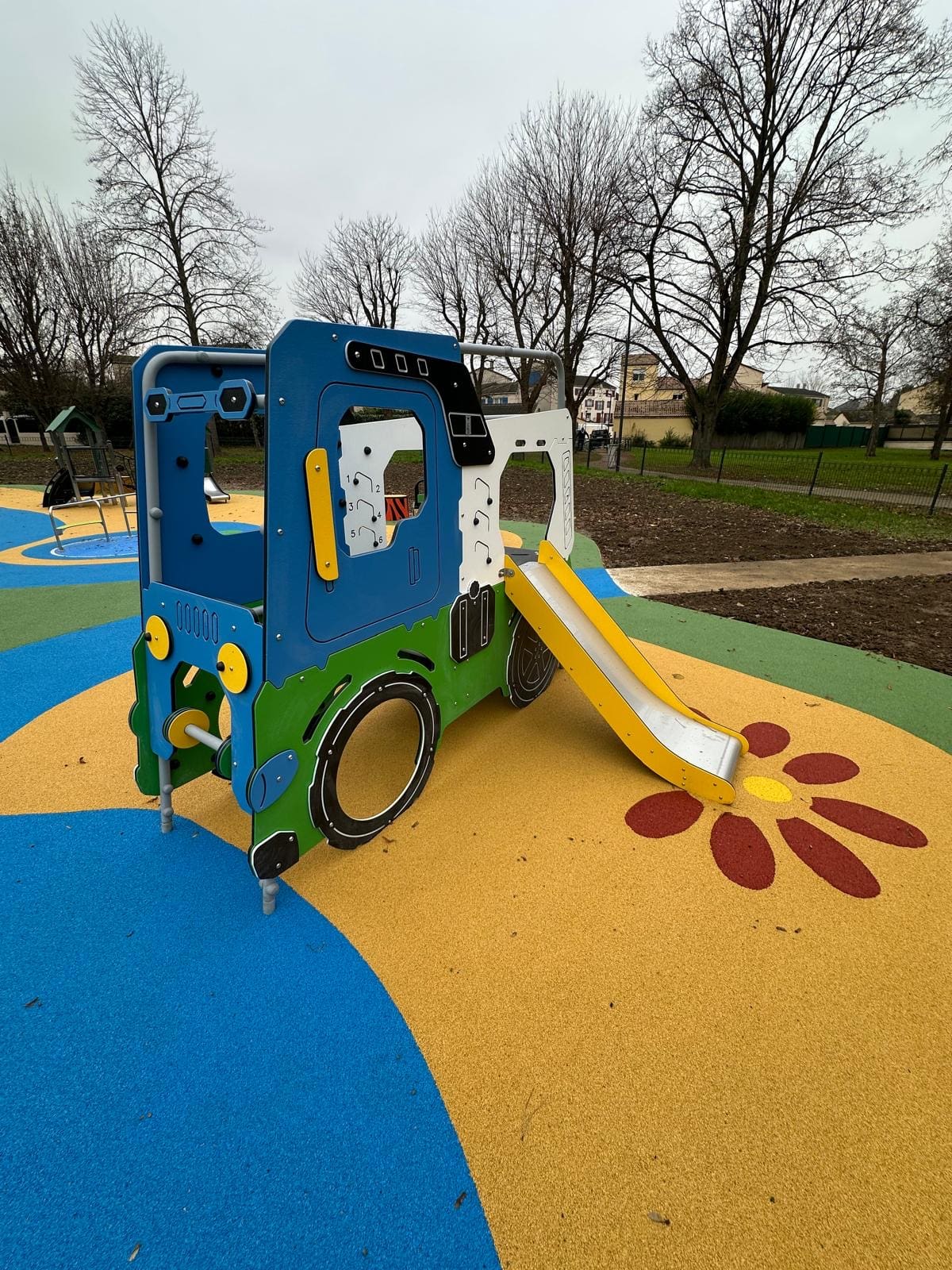 Structure de jeux à thème véhicule avec toboggan