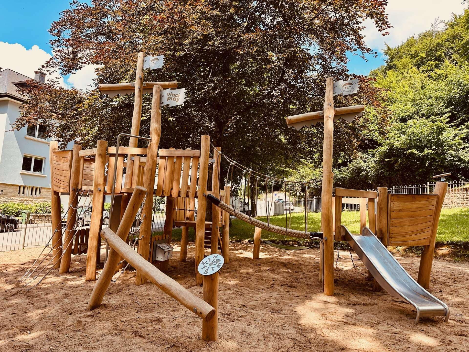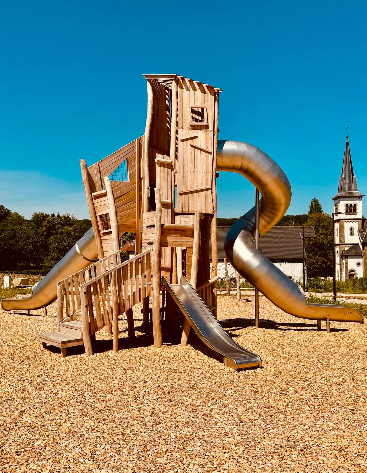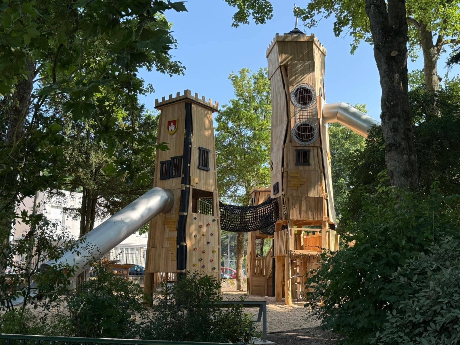 Structure de jeu en bois sur mesure avec toboggans en inox : Une aire de jeux unique pour les collectivités