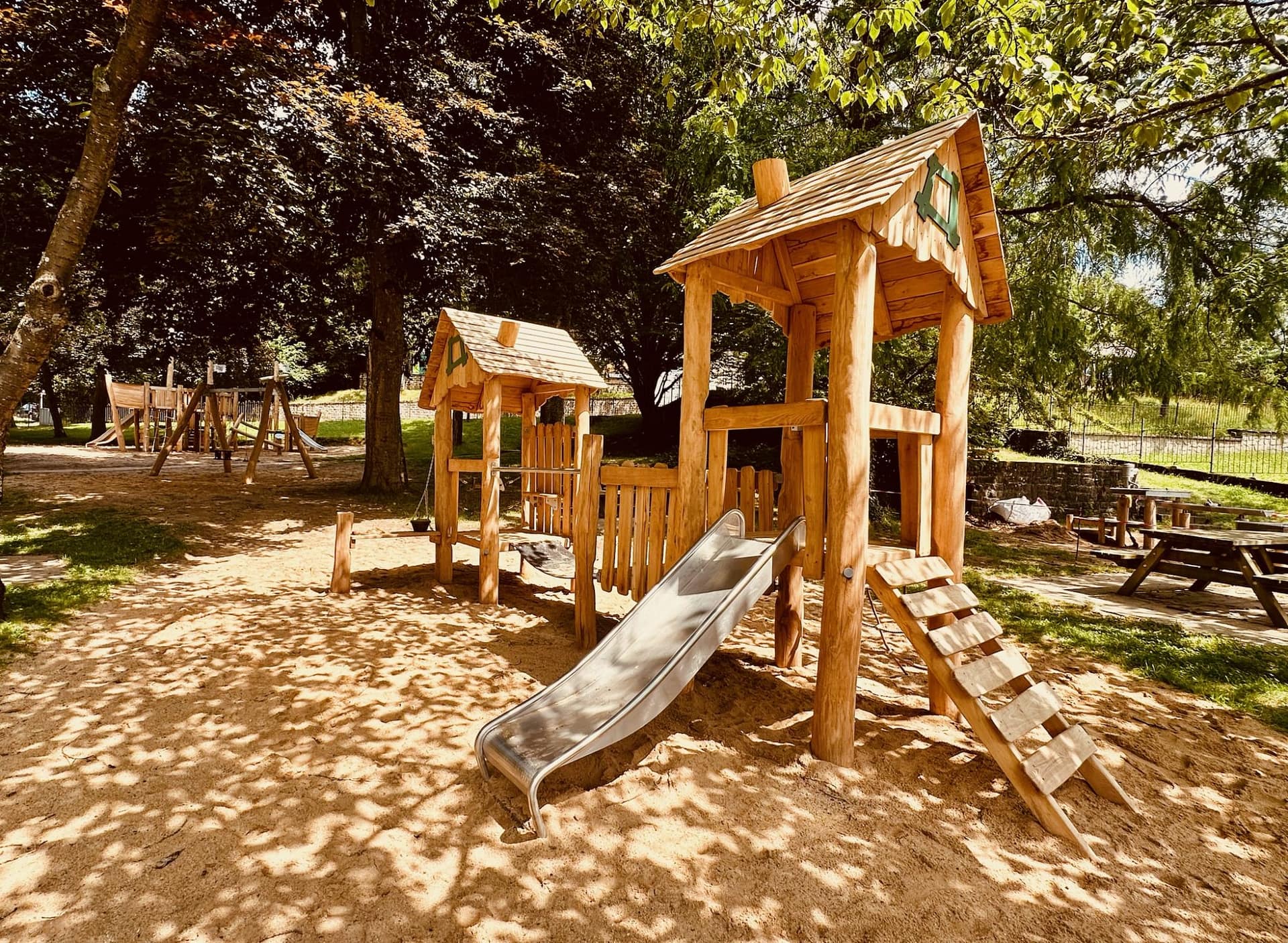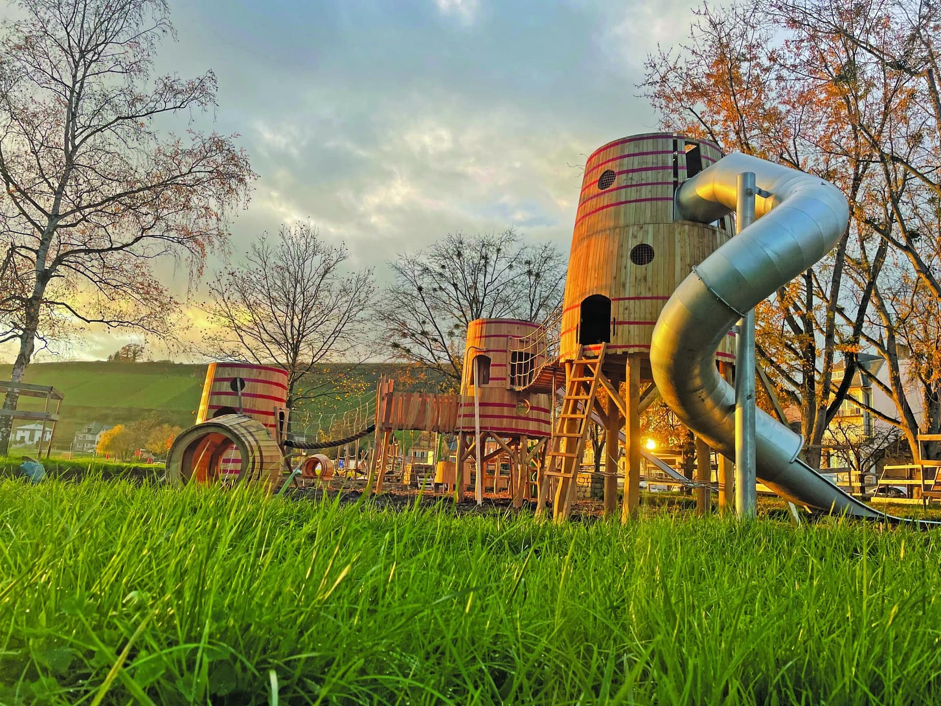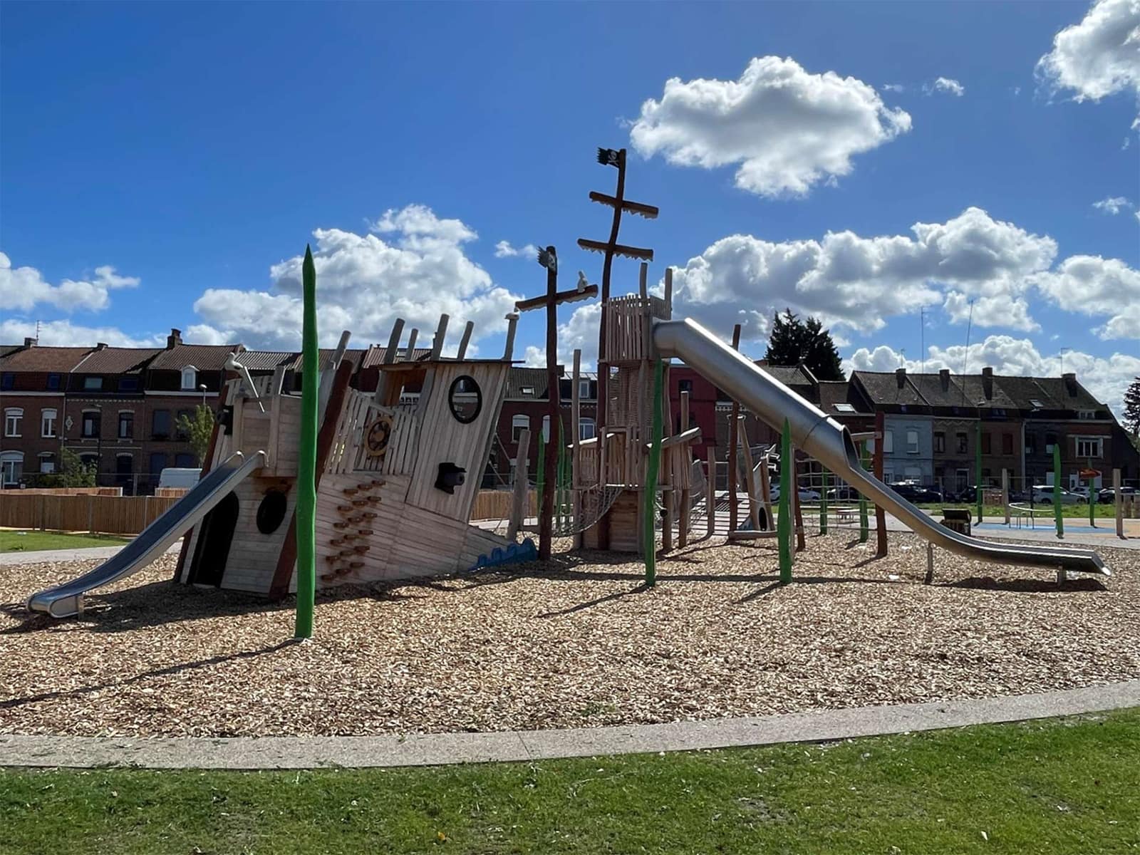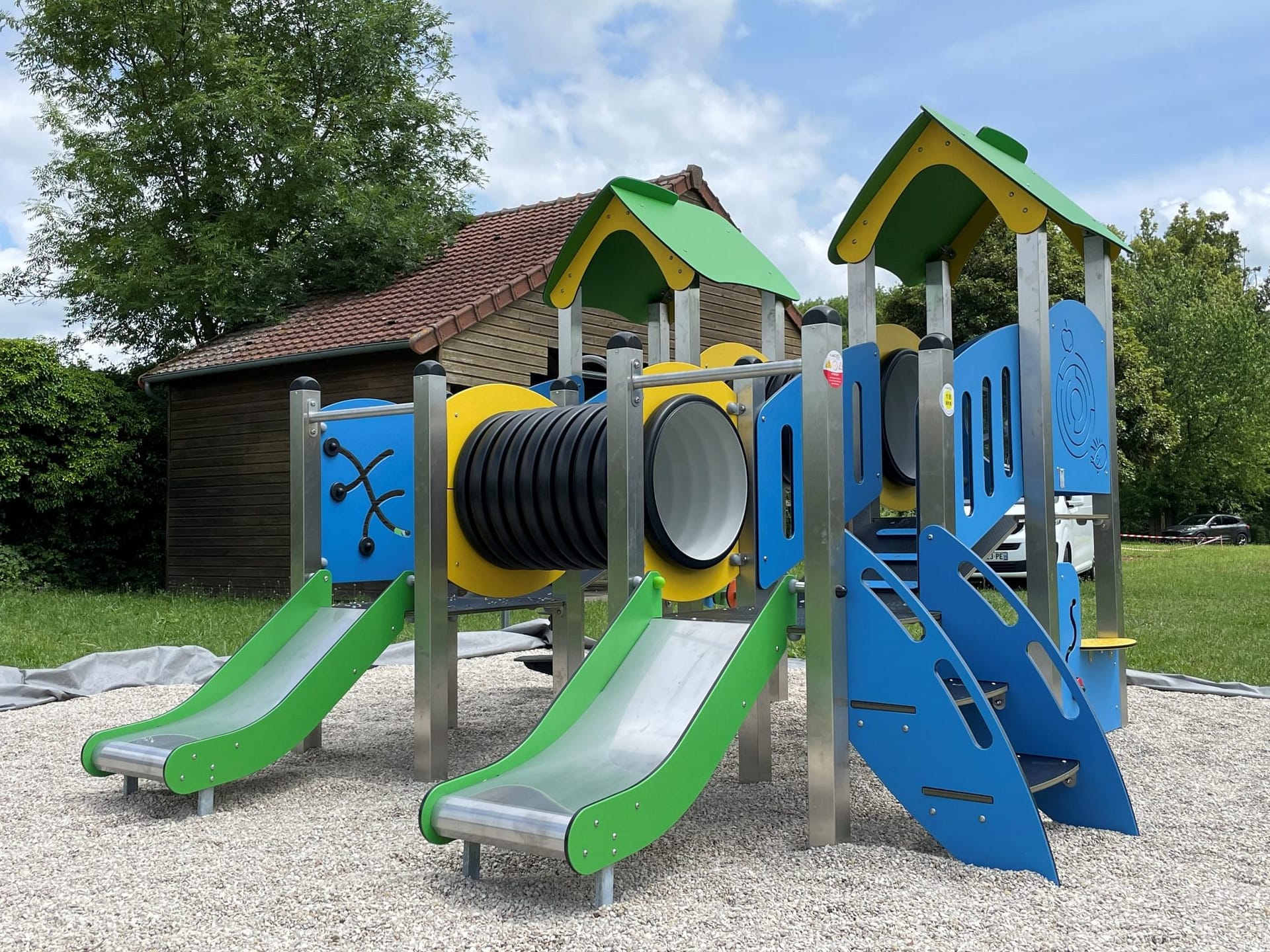 Structure de jeu en bois sur mesure avec toboggans en inox : Une aire de jeux unique pour les collectivités