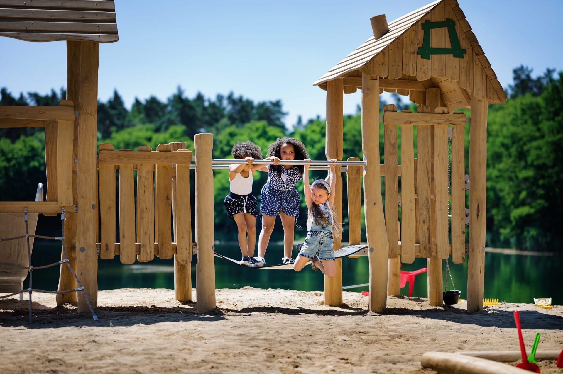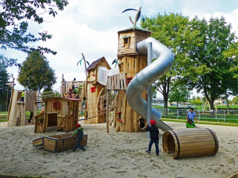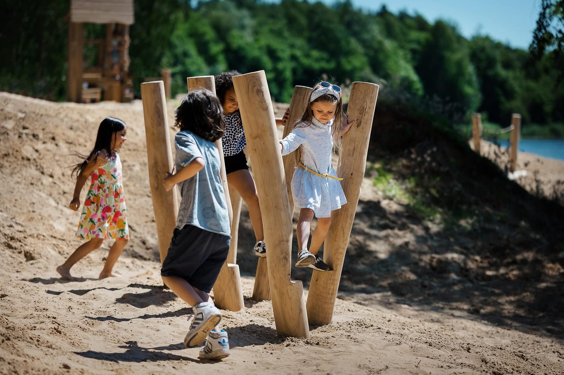 Aire de jeux en bois sur la plage : Un espace ludique et naturel en bord de mer