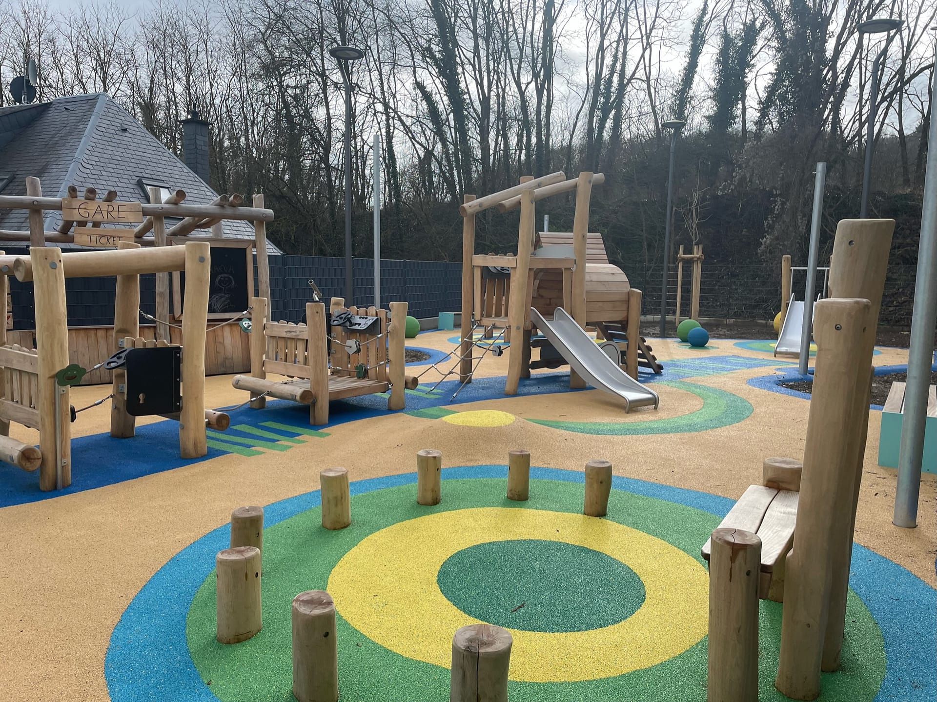 Aire de jeux en bois pmr accessibilité